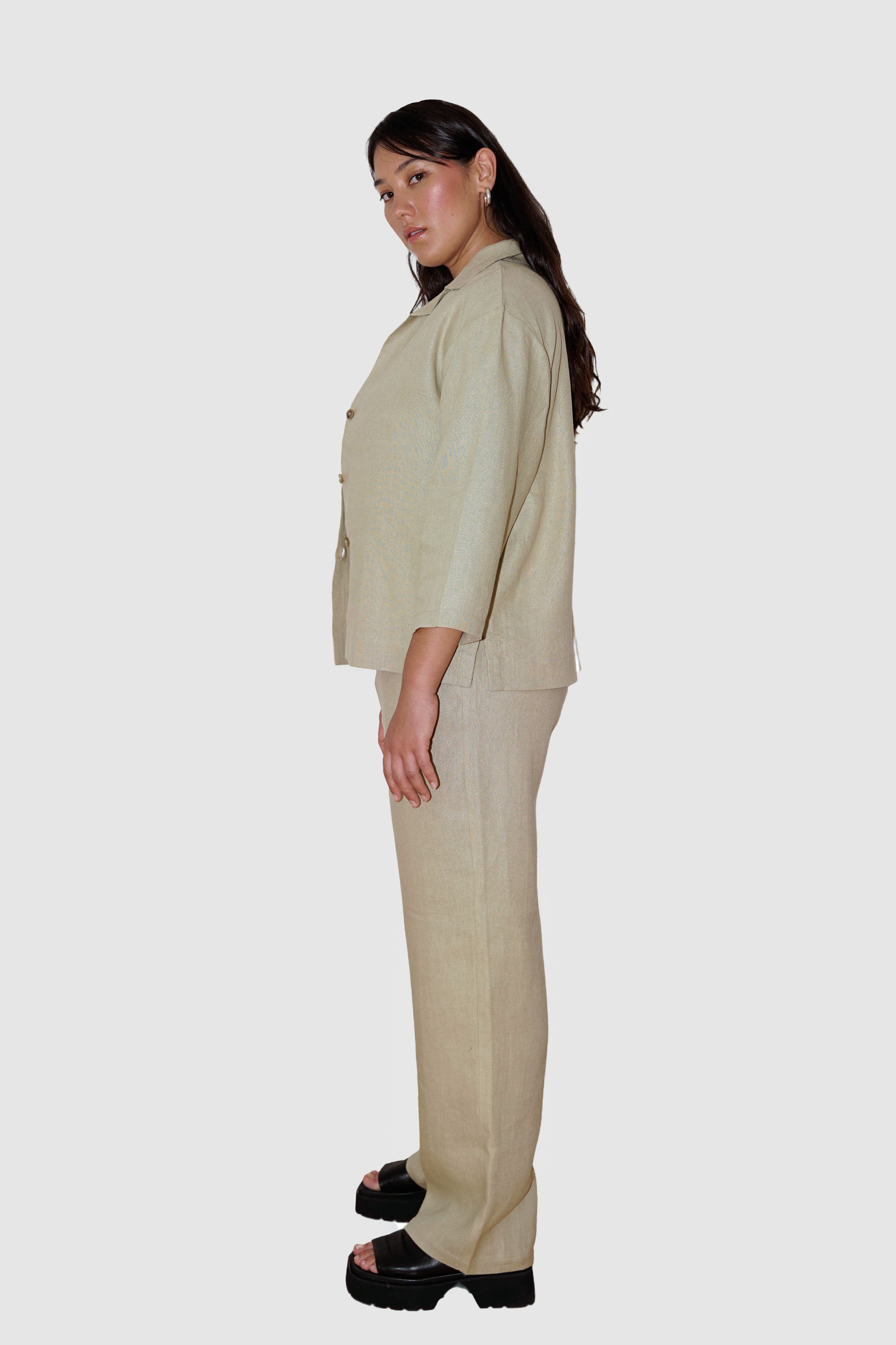The Overshirt is a relaxed shirt jacket style composed from a high-quality Italian linen. The design ensures an optimal combination of material, tailoring and details - without restricting the freedom of movement. The Overshirt was crafted in a small workshop in Portugal, featuring a lapel collar and three buttons made from recycled paper.