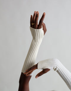Our knit accessories are knitted in Switzerland in a small manufactory less than 30km away from our studio. We regularly visit our manufacturer to develop new products together. All pieces are knitted fully-fashioned, which is a more traditional and higher quality method than cut and sew knitwear. As it is knitted directly in the final shape, there’s no waste of yarn. Fully-fashioned knitwear is a slower, more complex and expensive method – however rewards you with a seamless, neat and high-quality finish.