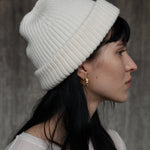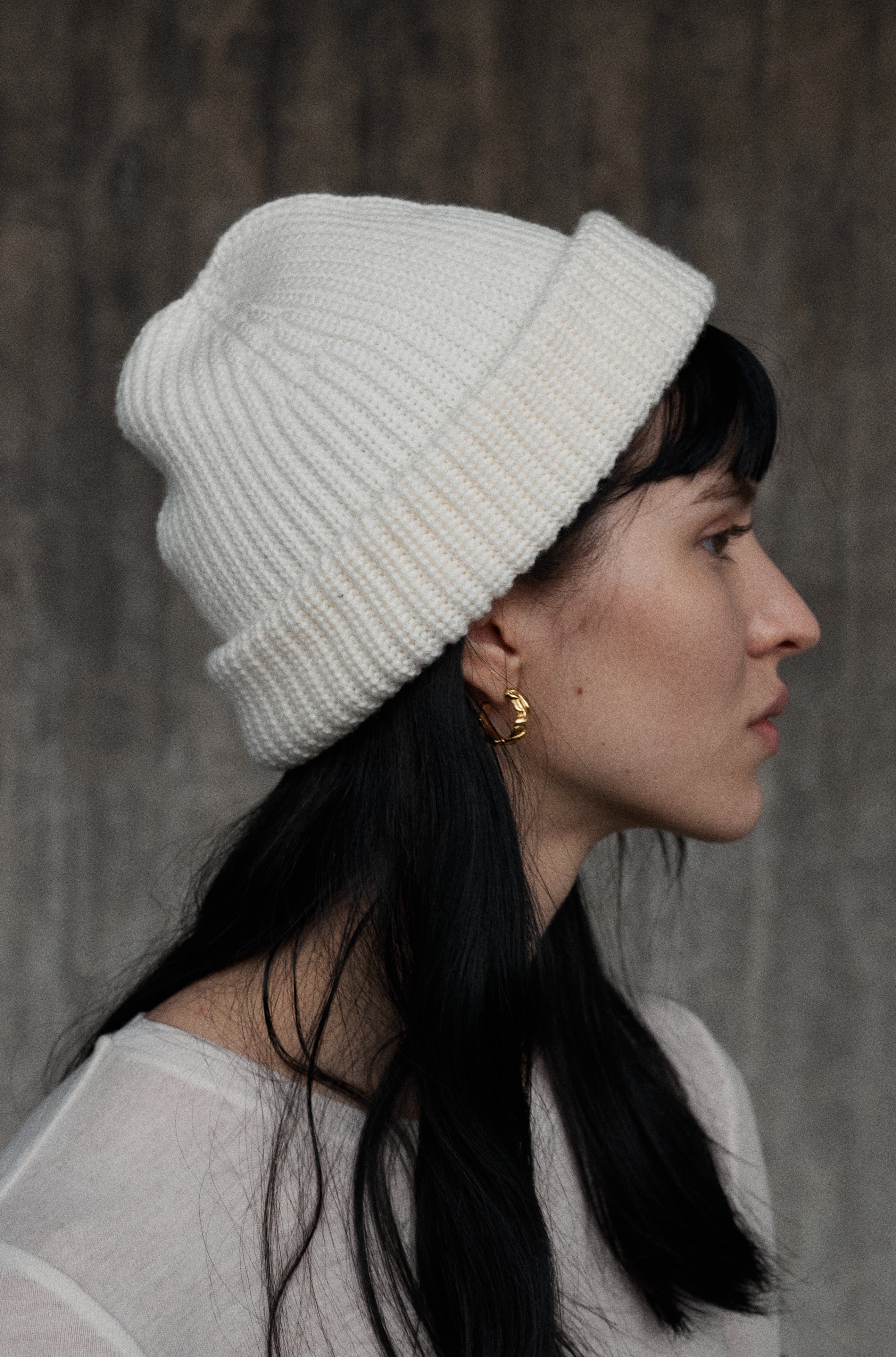 A timeless design crafted in Switzerland from 100% extrafine merino wool (mulesing free). The chunky knit ensures cozy warmth, while an adjustable folded brim allows for a personalised fit.