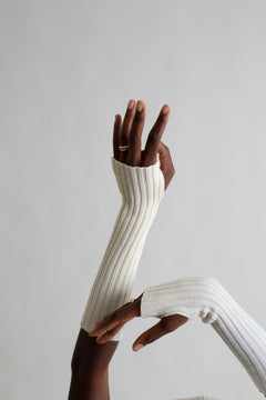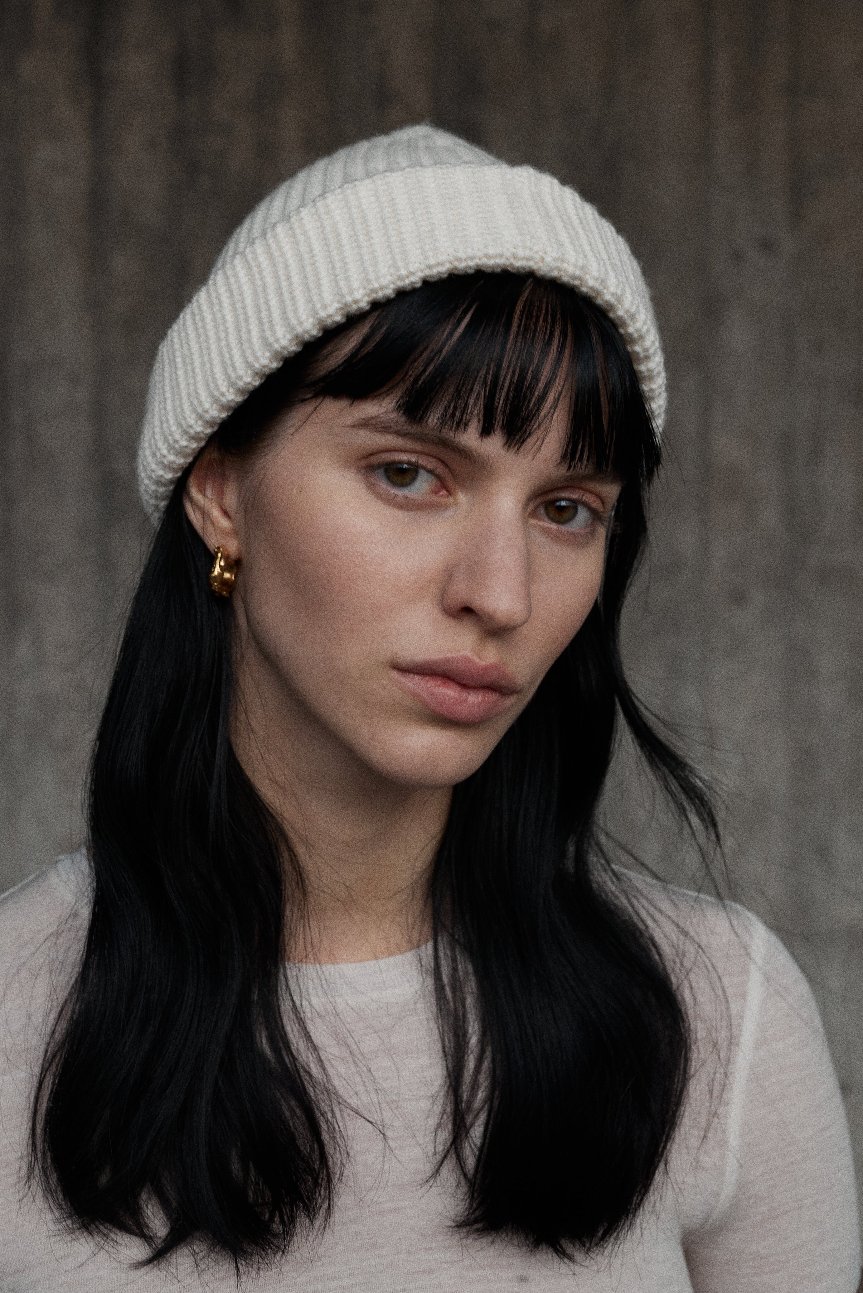 Our knit accessories are knitted in Switzerland in a small manufactory less than 30km away from our studio. We regularly visit our manufacturer to develop new products together. All pieces are knitted fully-fashioned, which is a more traditional and higher quality method than cut and sew knitwear. As it is knitted directly in the final shape, there’s no waste of yarn. Fully-fashioned knitwear is a slower, more complex and expensive method – however rewards you with a seamless, neat and high-quality finish.