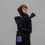Our knit accessories are knitted in Switzerland in a small manufactory less than 30km away from our studio. We regularly visit our manufacturer to develop new products together. All pieces are knitted fully-fashioned, which is a more traditional and higher quality method than cut and sew knitwear. As it is knitted directly in the final shape, there’s no waste of yarn. Fully-fashioned knitwear is a slower, more complex and expensive method – however rewards you with a seamless, neat and high-quality finish.