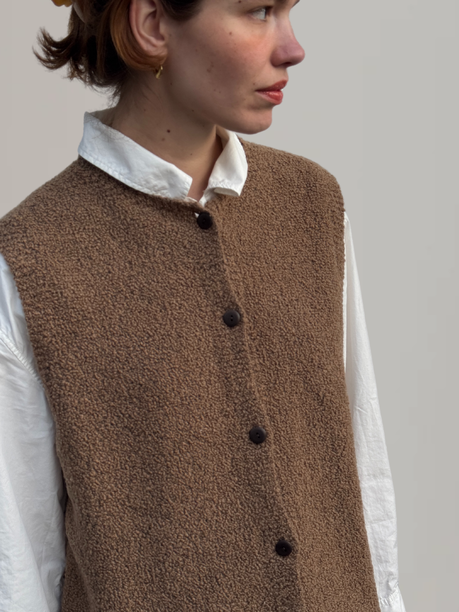 We source only the finest bouclé yarn, crafted in Italy from a luxurious blend of merino wool and cashmere. Known for their exceptional softness and warmth, merino and cashmere come together to create a fabric that’s both beautiful and durable. Merino wool provides natural breathability and resilience, while cashmere adds extra softness and lightweight warmth.