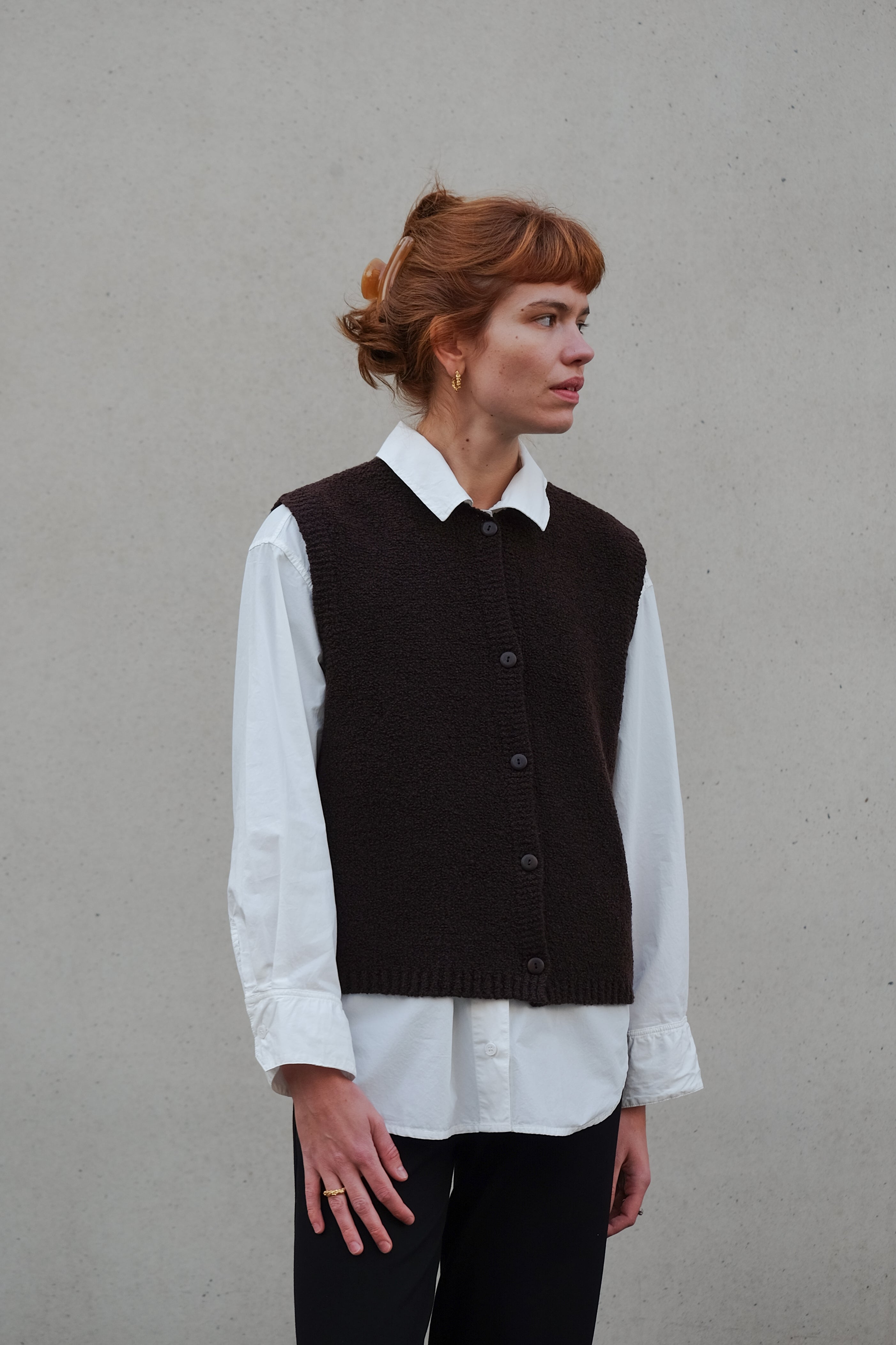 We source only the finest bouclé yarn, crafted in Italy from a luxurious blend of merino wool and cashmere. Known for their exceptional softness and warmth, merino and cashmere come together to create a fabric that’s both beautiful and durable. Merino wool provides natural breathability and resilience, while cashmere adds extra softness and lightweight warmth.