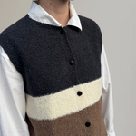 Crafted in Switzerland from a soft merino and cashmere blend, this vest combines elegance with comfort. Knitted in a unique bouclé texture, it offers a distinctive look with a seamless finish. The front closure features a classic crew neck and five coronut buttons. Its boxy fit ensures a modern silhouette, making it easy to layer over your favourite basics or wear on its own for a statement piece. Whether paired with our Oversized Shirt or the Heavy T-Shirt, this vest is designed to seamlessly transitioning from casual to refined occasions.