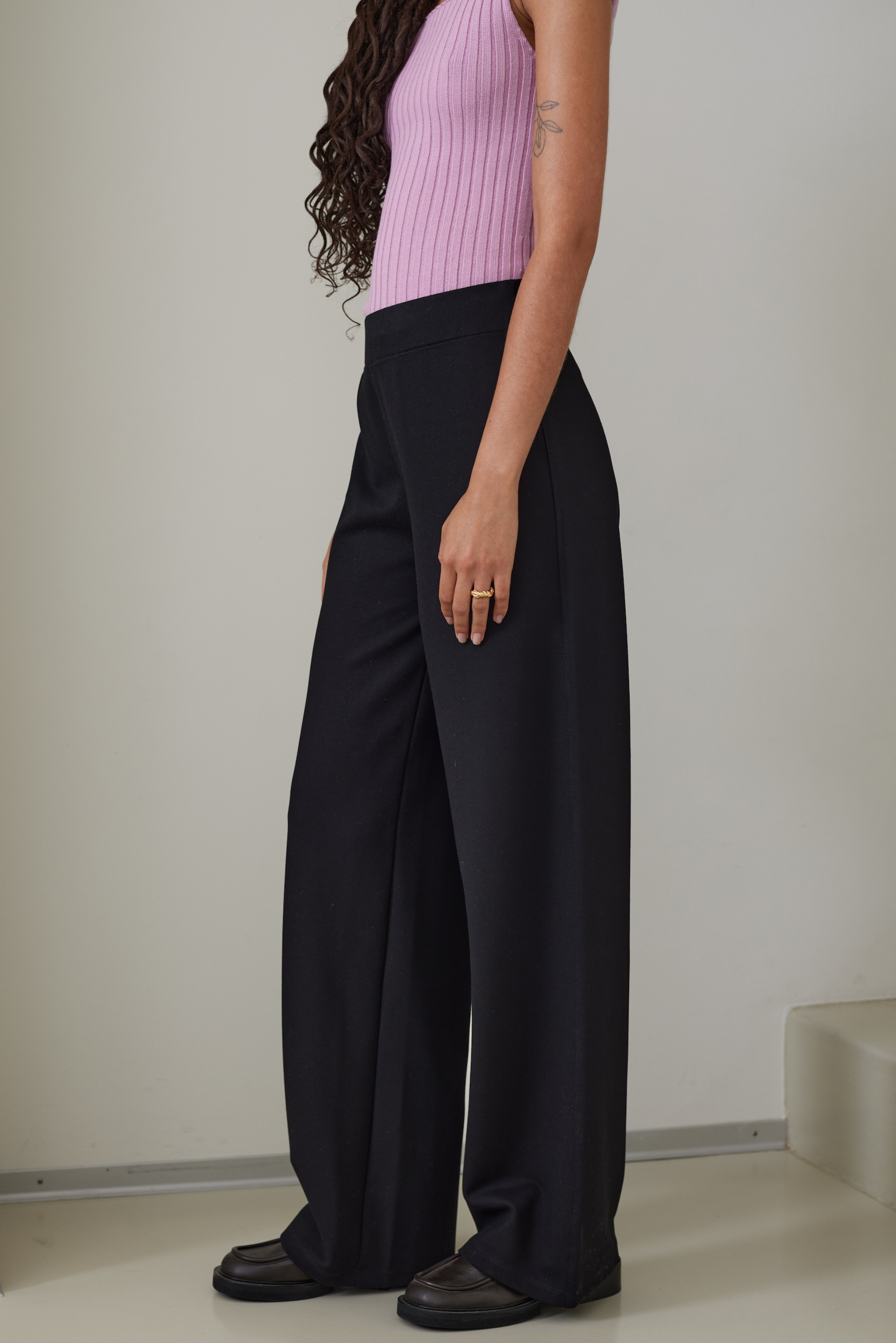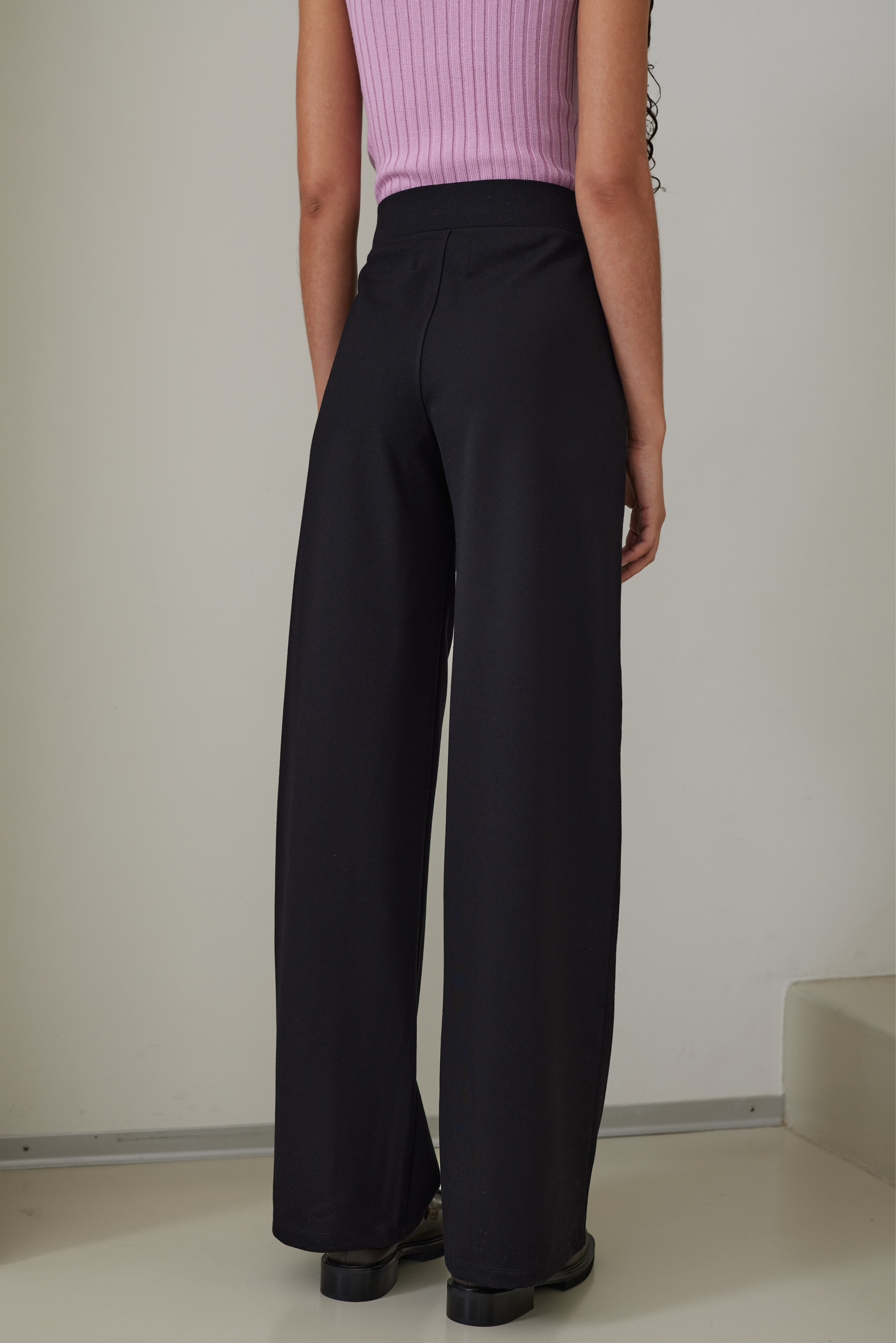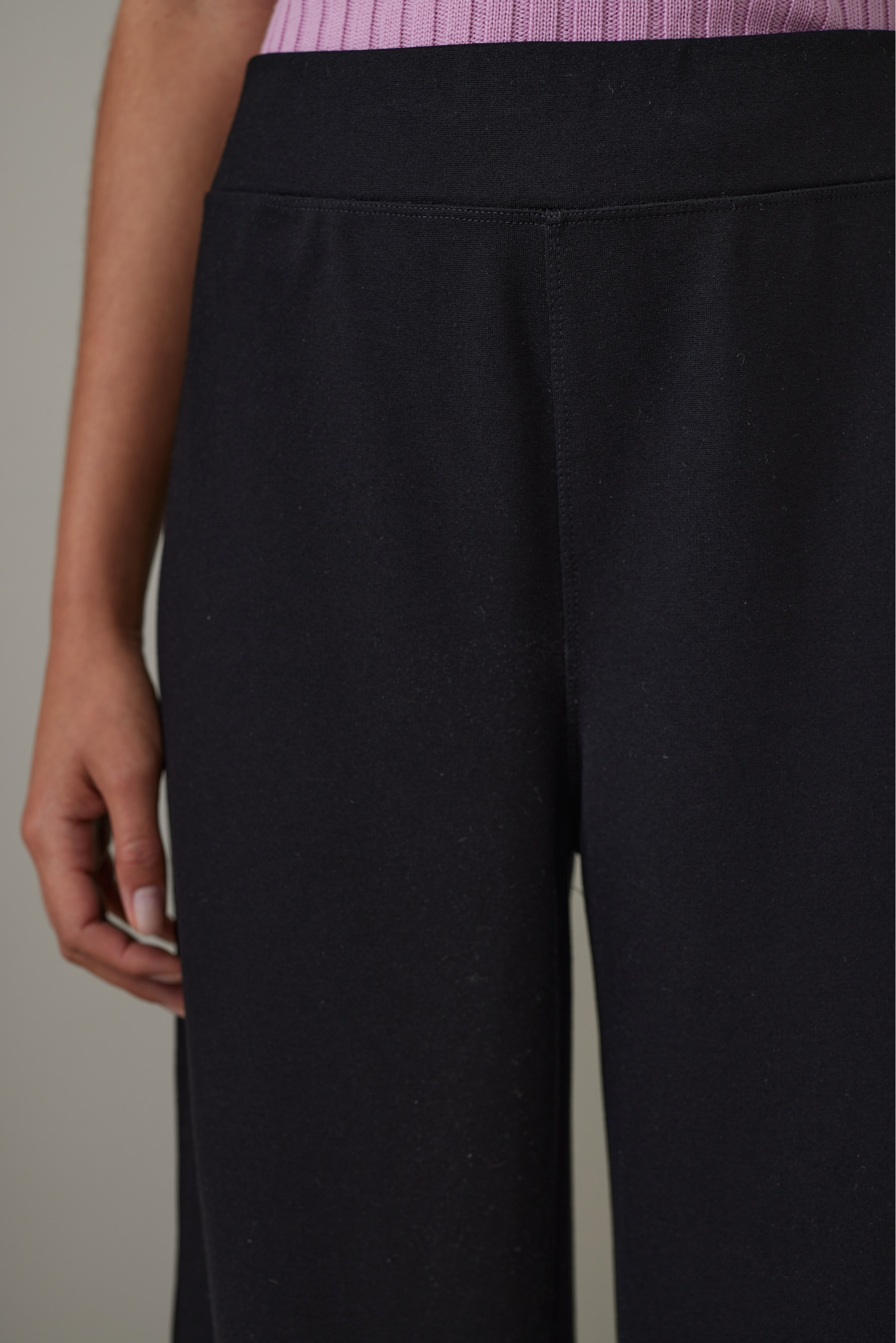 Crafted from sustainable viscose Ecovero®, these trousers are designed for a comfortable yet elegant fit. With their straight, long legs and relaxed cut, they provide a flattering silhouette. The elasticated waistband enhances comfort and contribute to ease of movement. A sleek, pocket-less design further enhances the smooth drape of the mid-weight fabric.