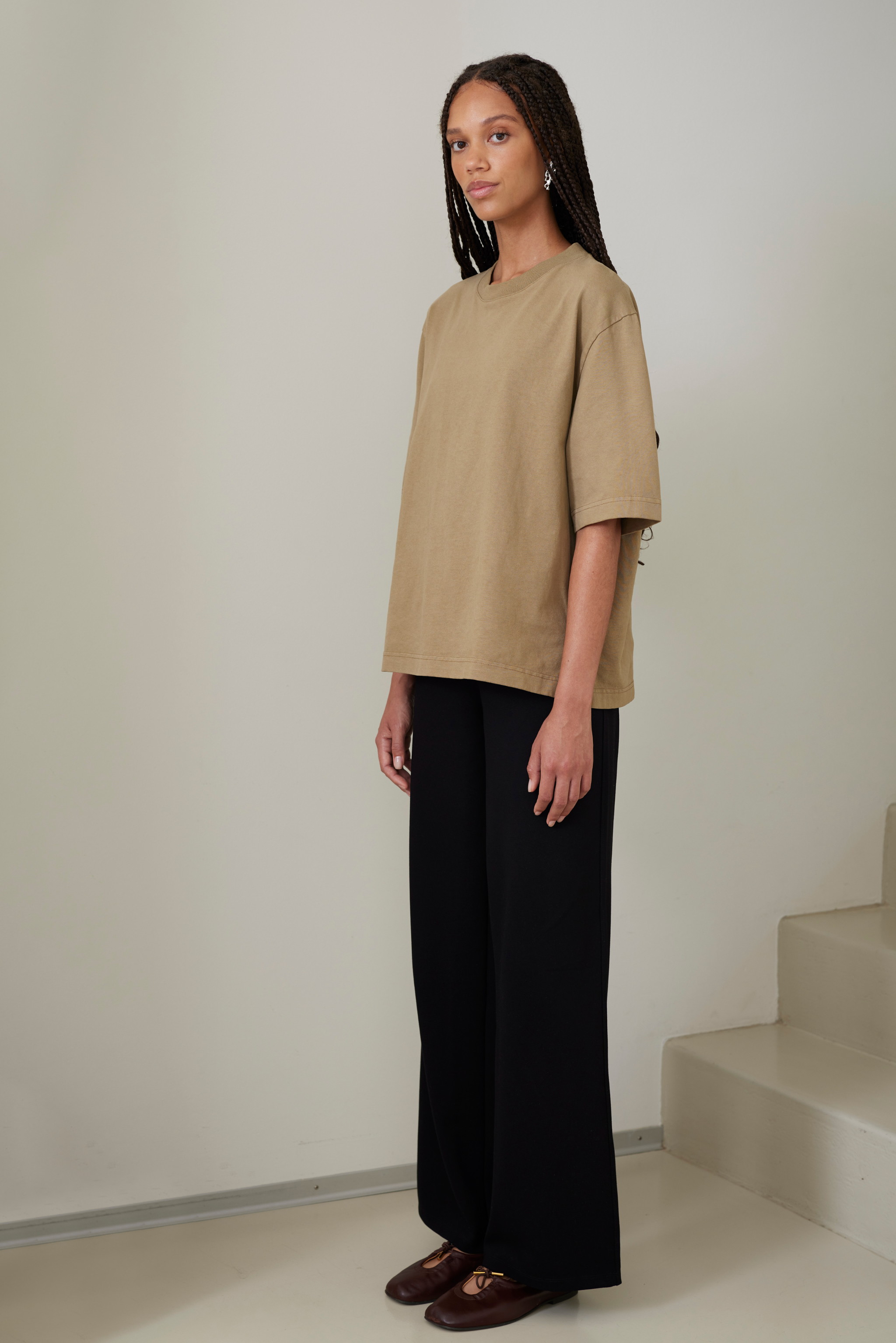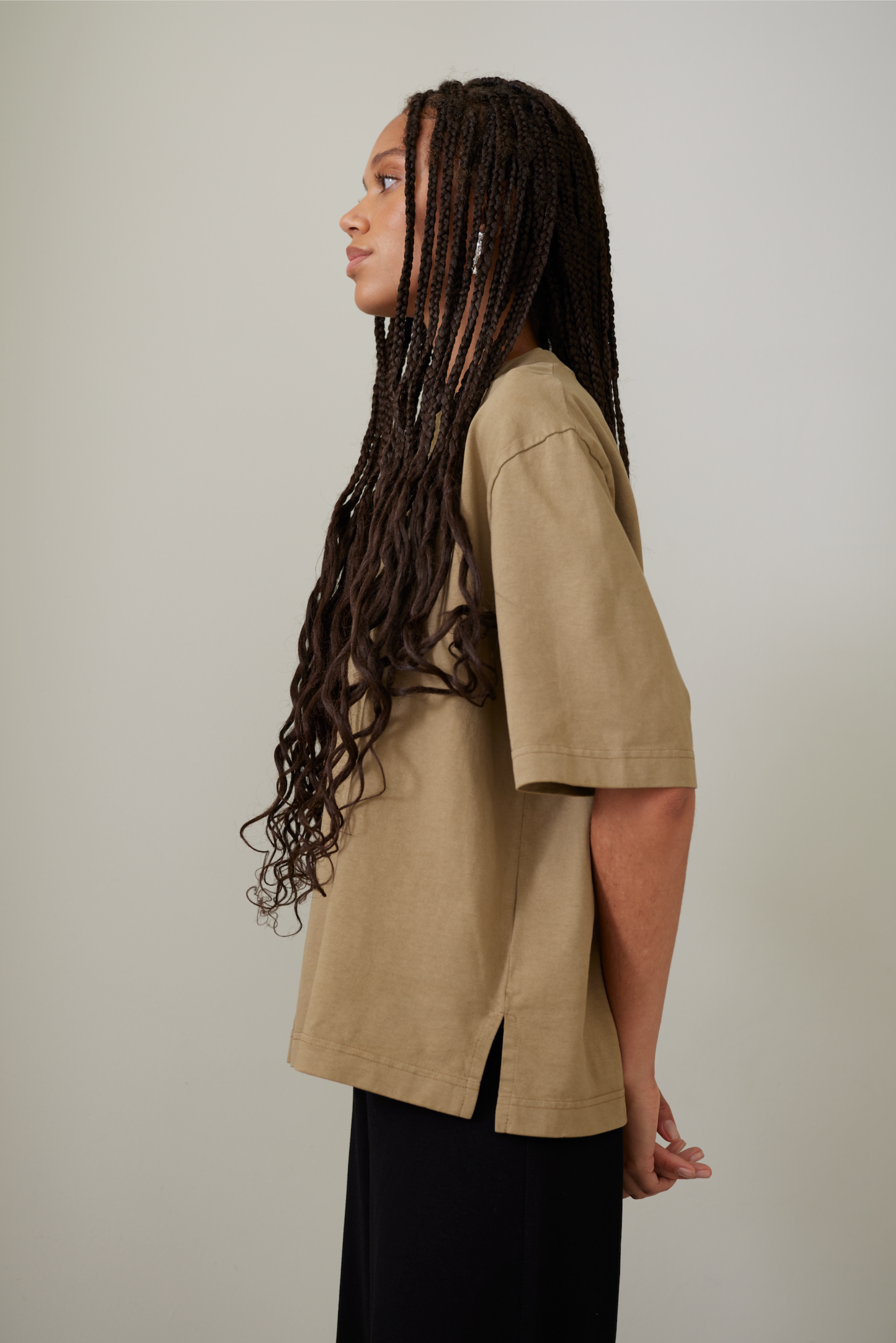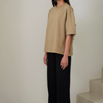 This heavy t-shirt features an oversized fit with long, wide sleeves. Made from premium heavyweight organic cotton, it offers an exceptionally soft yet sturdy hand feel. An essential piece in any wardrobe, it effortlessly combines comfort and style. Whether dressed up with tailored pants or kept casual with your favorite jeans, this versatile t-shirt adapts seamlessly to any look. The high-quality organic cotton ensures durability and comfort, making it perfect for everyday wear or special occasions.