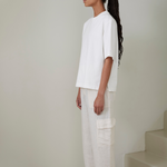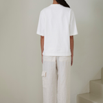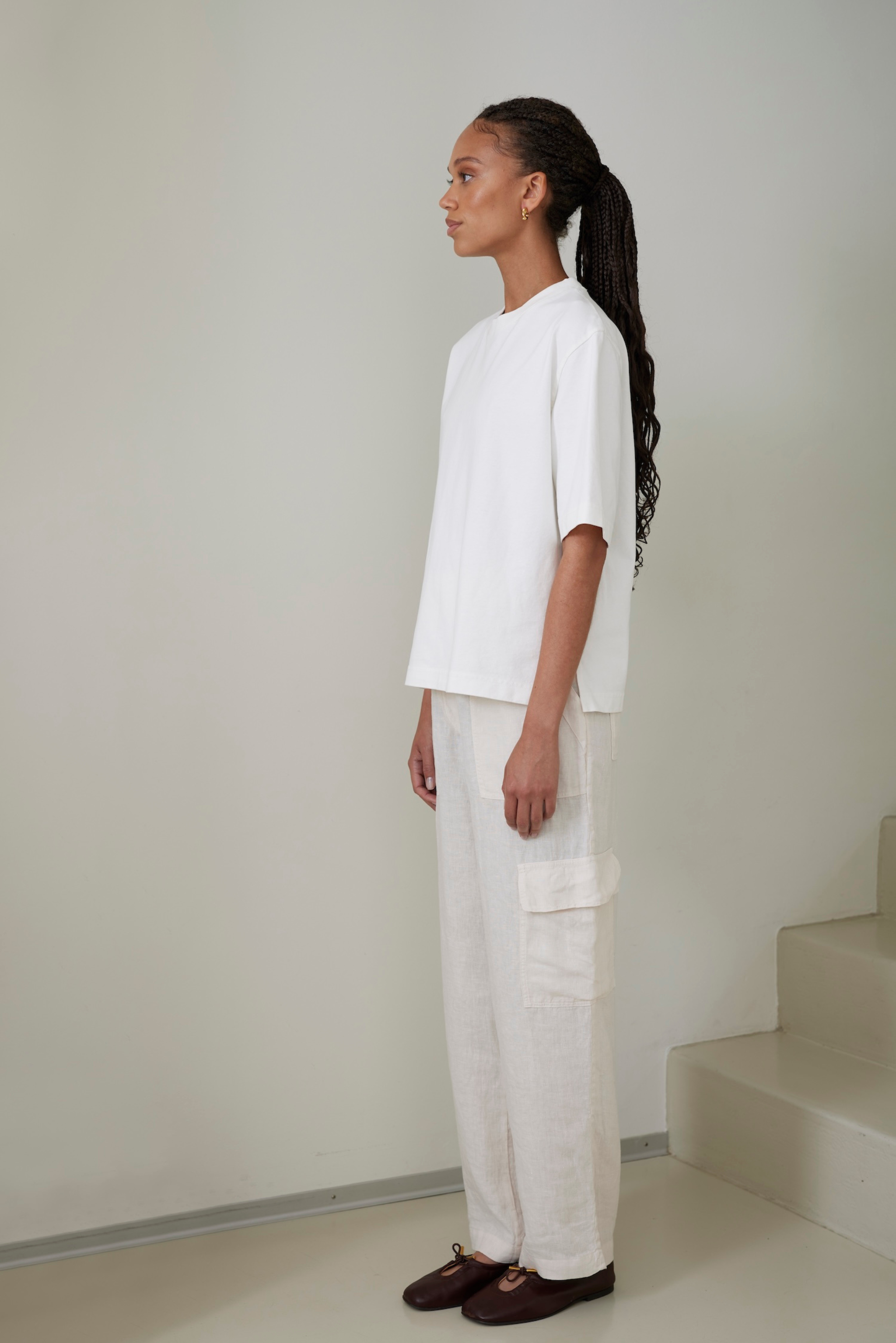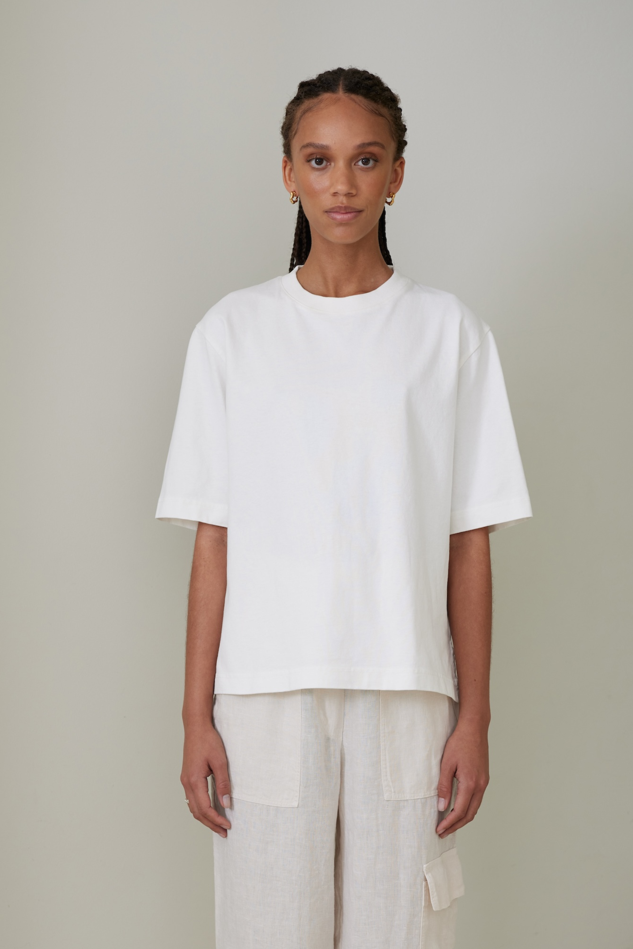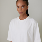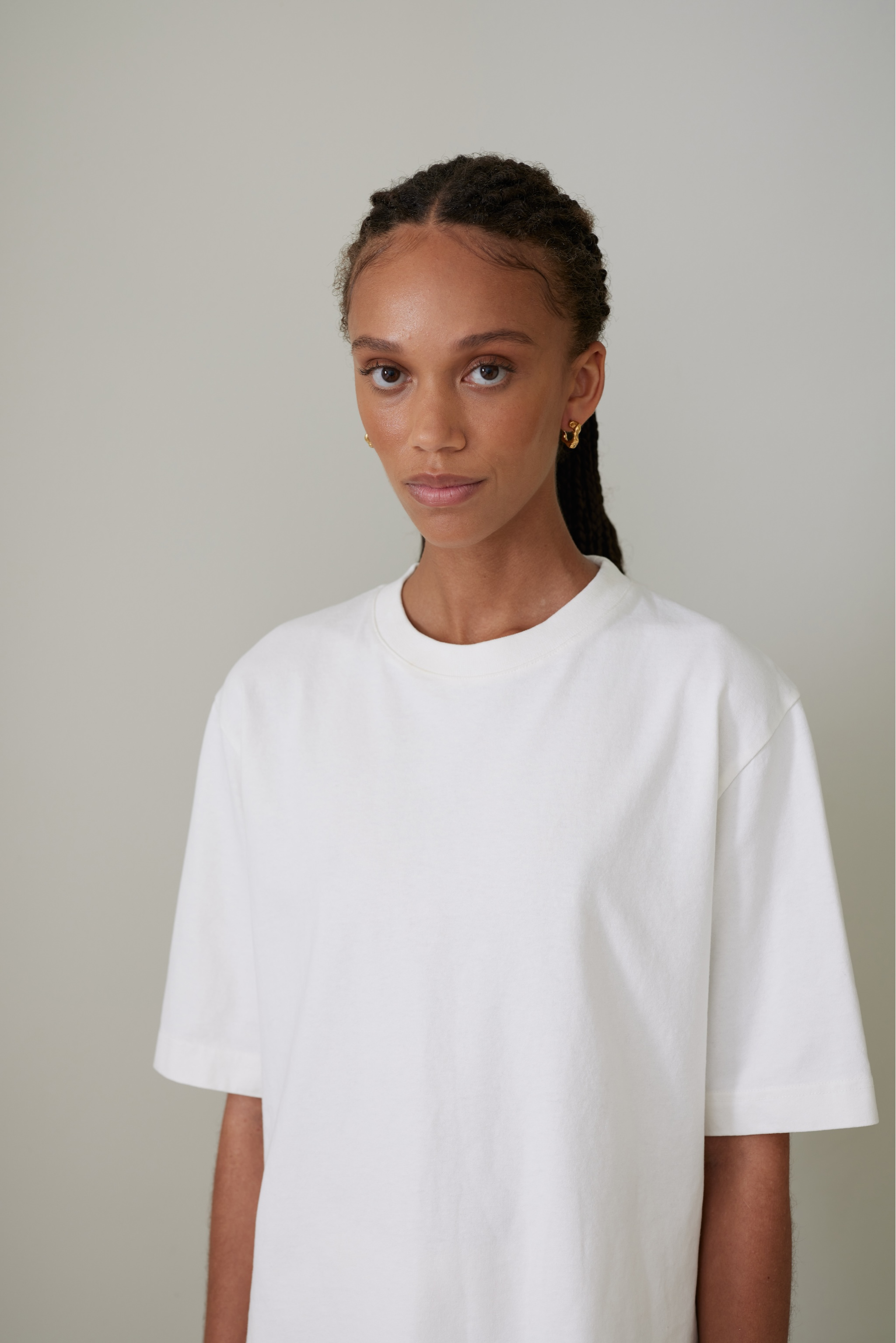This heavy t-shirt features an oversized fit with long, wide sleeves. Made from premium heavyweight organic cotton, it offers an exceptionally soft yet sturdy hand feel. An essential piece in any wardrobe, it effortlessly combines comfort and style. Whether dressed up with tailored pants or kept casual with your favorite jeans, this versatile t-shirt adapts seamlessly to any look. The high-quality organic cotton ensures durability and comfort, making it perfect for everyday wear or special occasions.