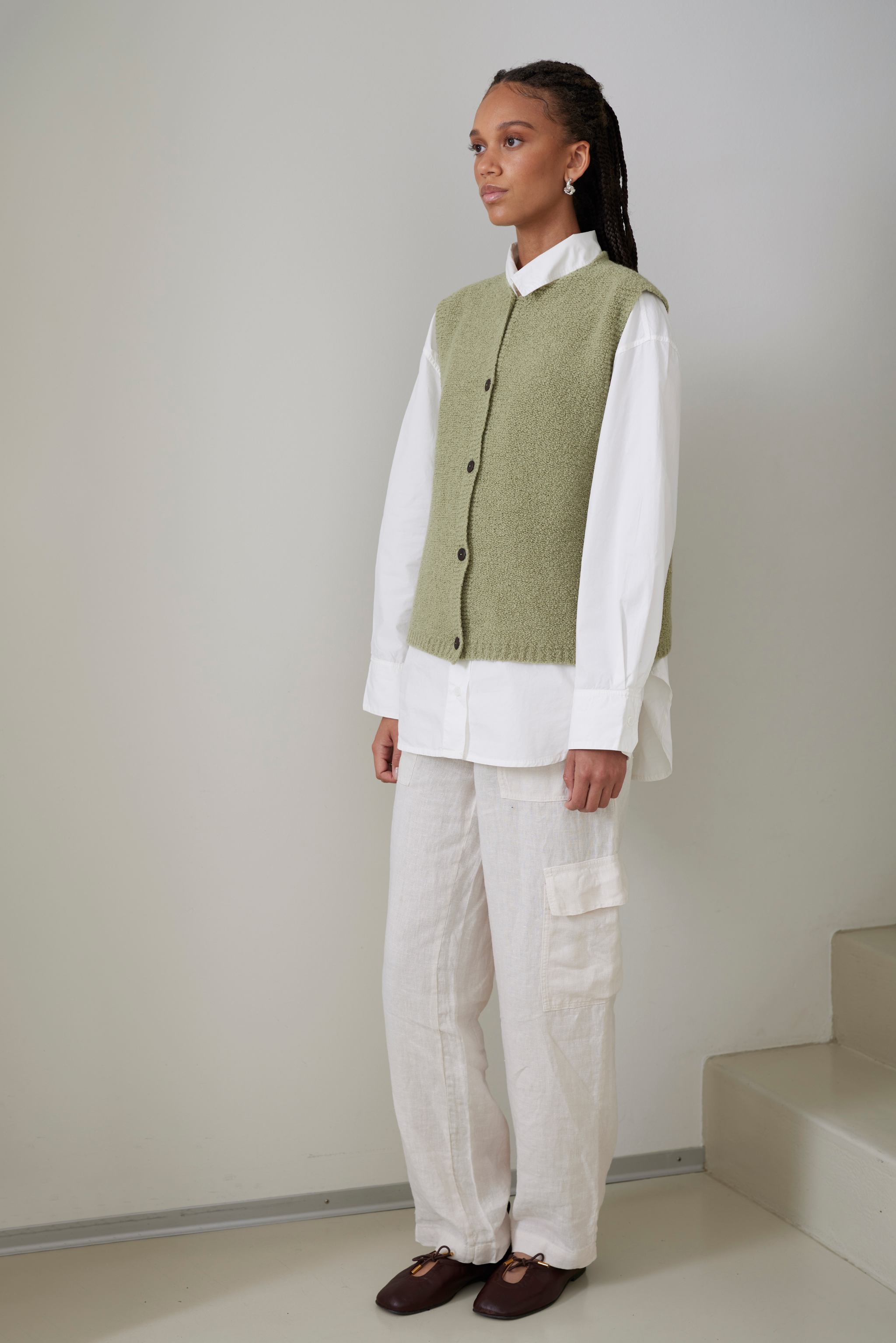 All fabrics are handpicked by Nora, prioritizing locally woven natural, organic, recycled, and innovative fibers. We often source local designer deadstock fabric to minimize resource use.