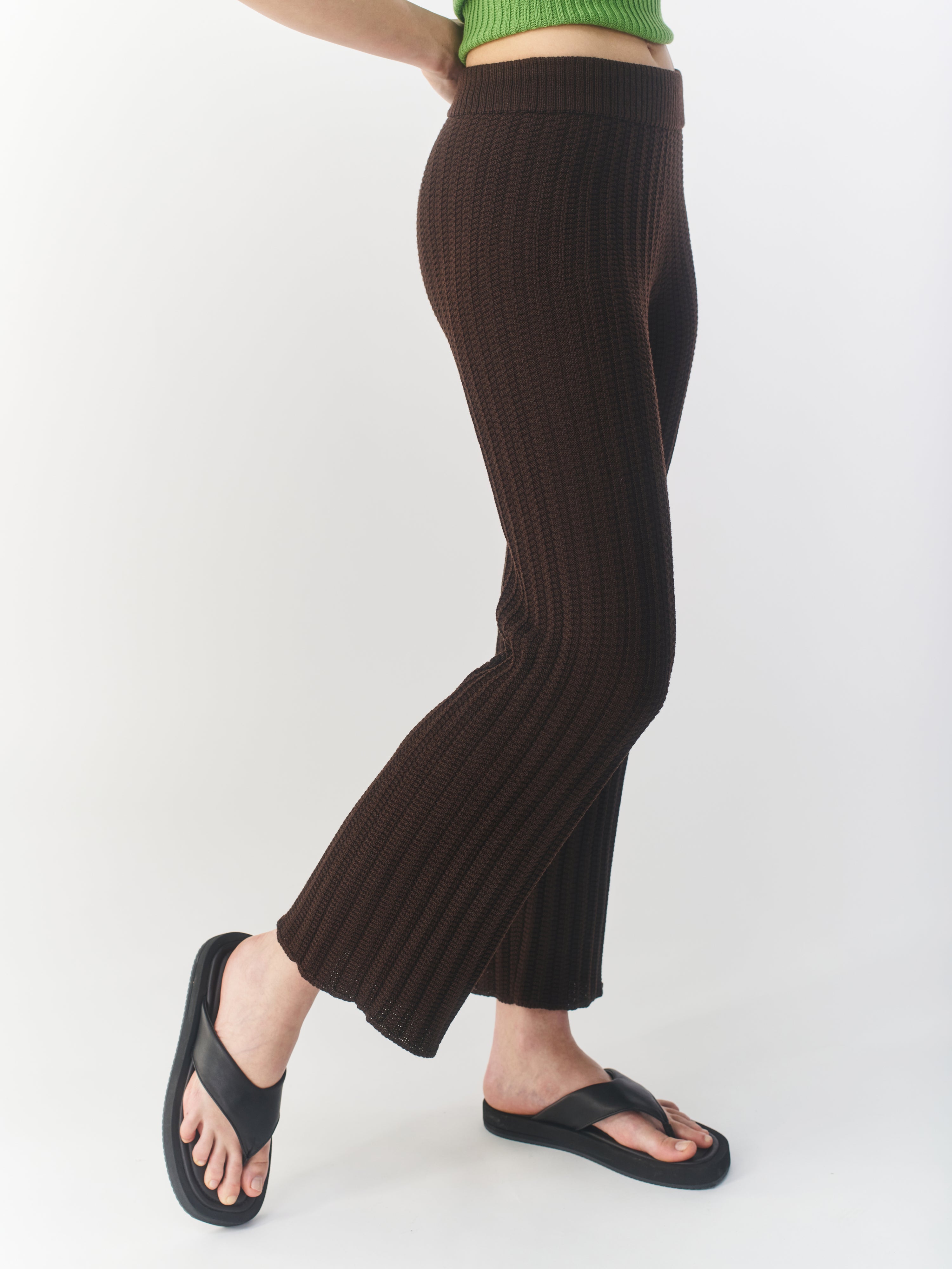 Model is 1,80m and wears the Top Ribbed in size XS/S and the Pants Plissé in size M/L.