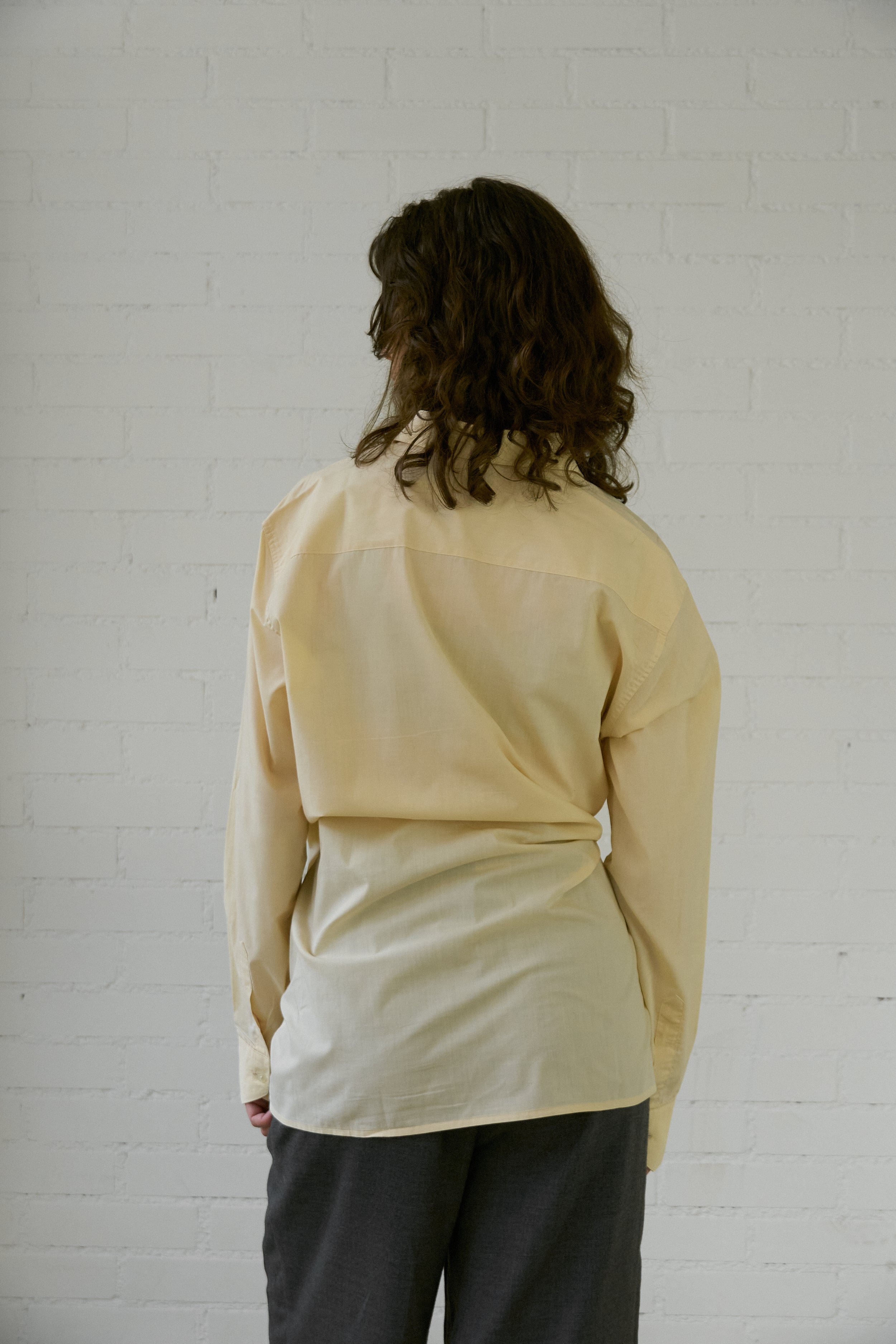 The Asymmetrical Shirt is our take on your favorite shirt, but reminagined with intention and interest. We've designed this vintage piece to be worn with a soft tailoring feel- the shirt crosses over the body creating an asymmetrical approach.