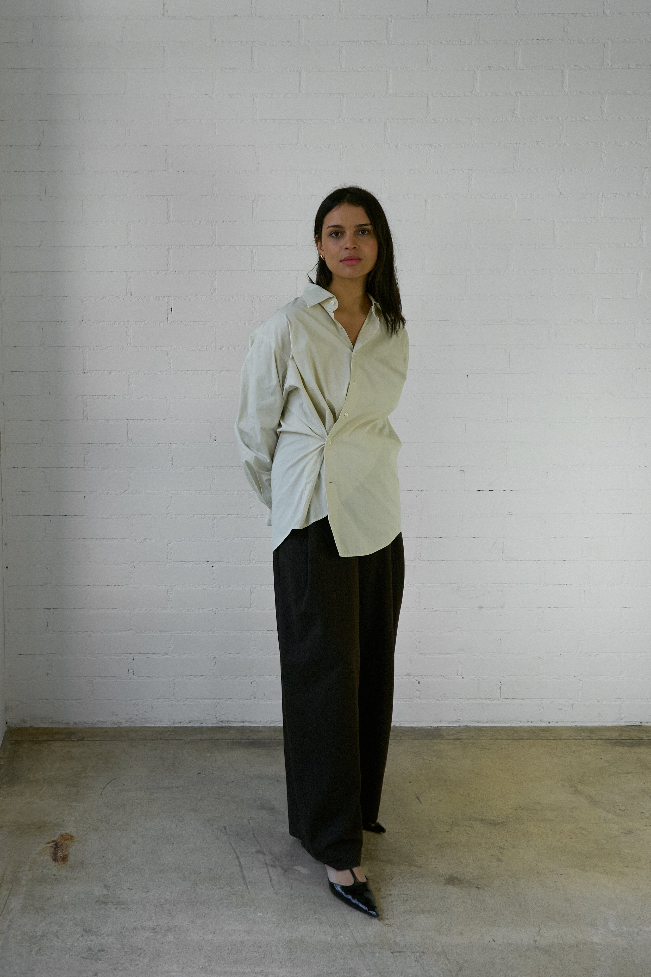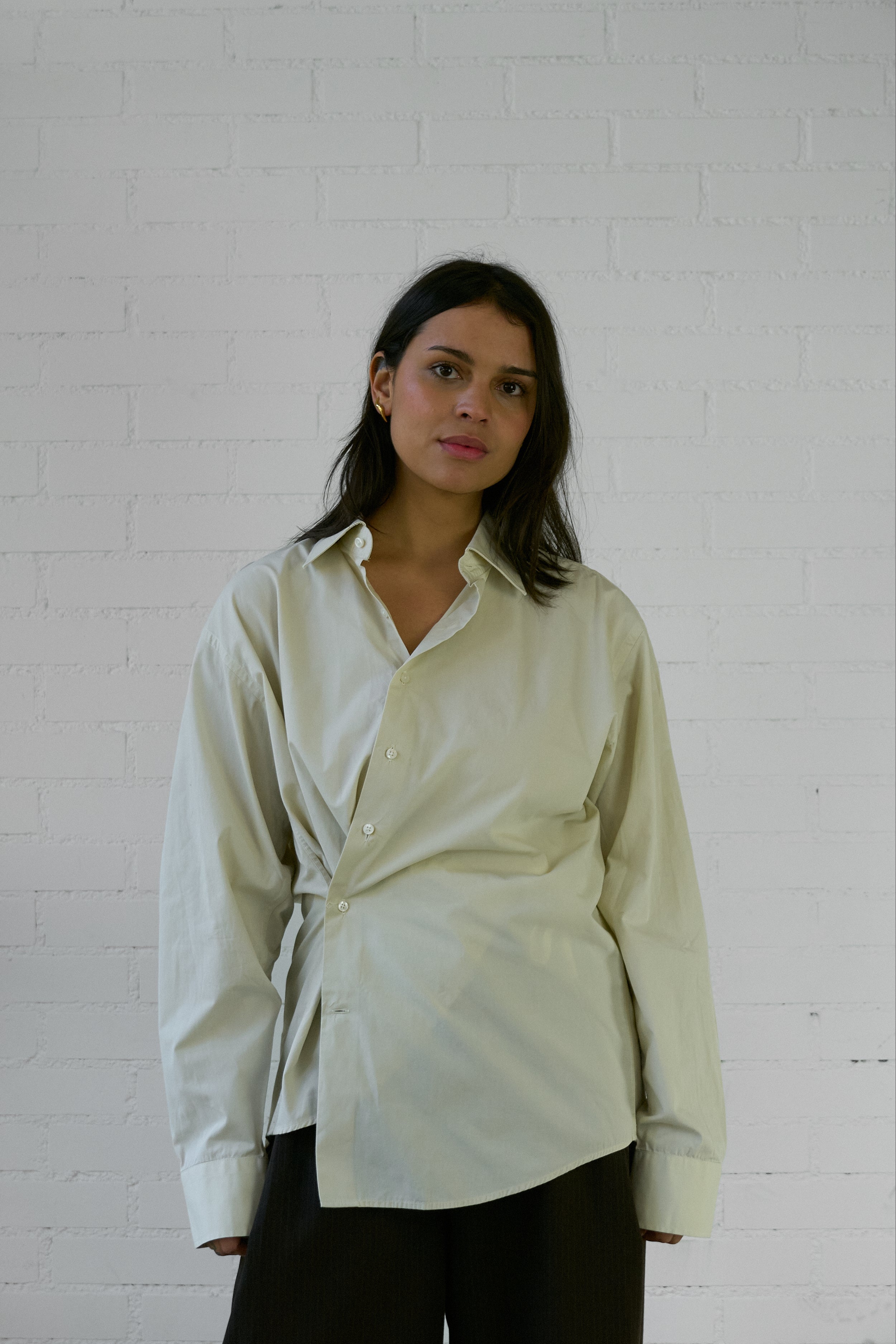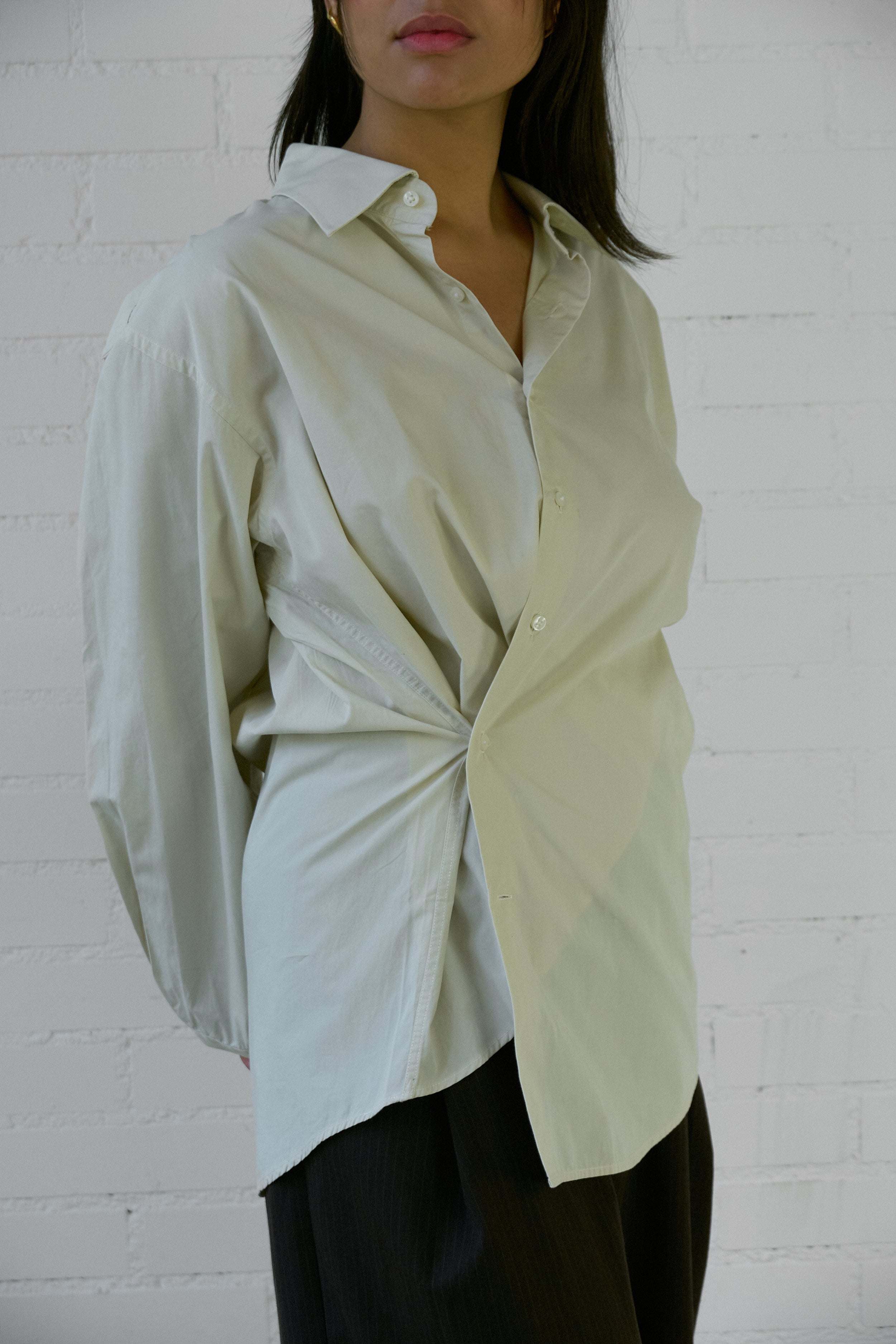 The Asymmetrical Shirt is our take on your favorite shirt, but reminagined with intention and interest. We've designed this vintage piece to be worn with a soft tailoring feel- the shirt crosses over the body creating an asymmetrical approach.