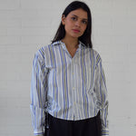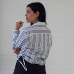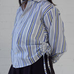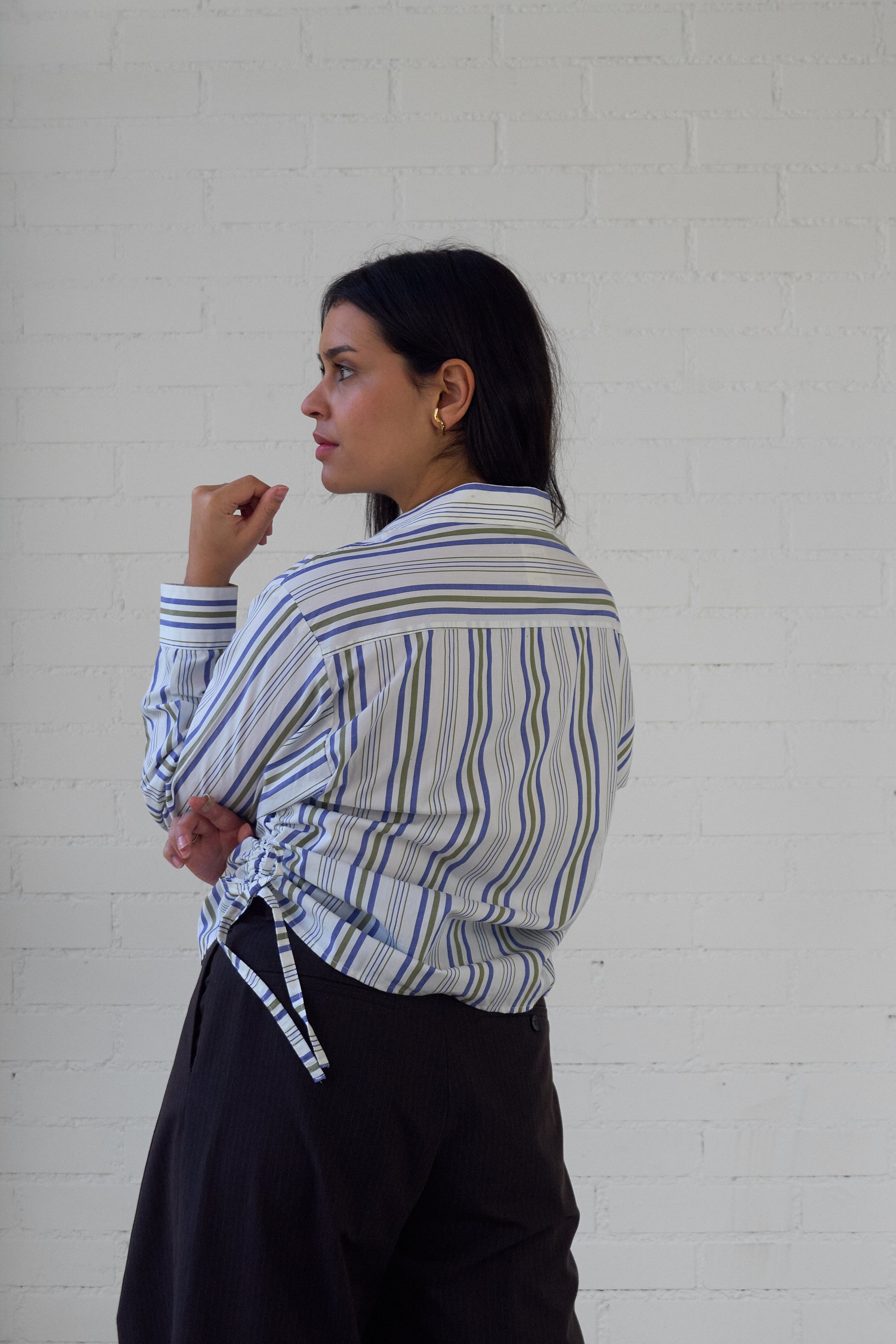 The Side Ruched Shirt is a playful revision on your favorite shirt. We've designed this vintage piece with two pulls at each side of the shirt, here you're free to play and decide how you want to wear it. Pull the strings tighter and make a bow tie or wear it relaxed without a tie.