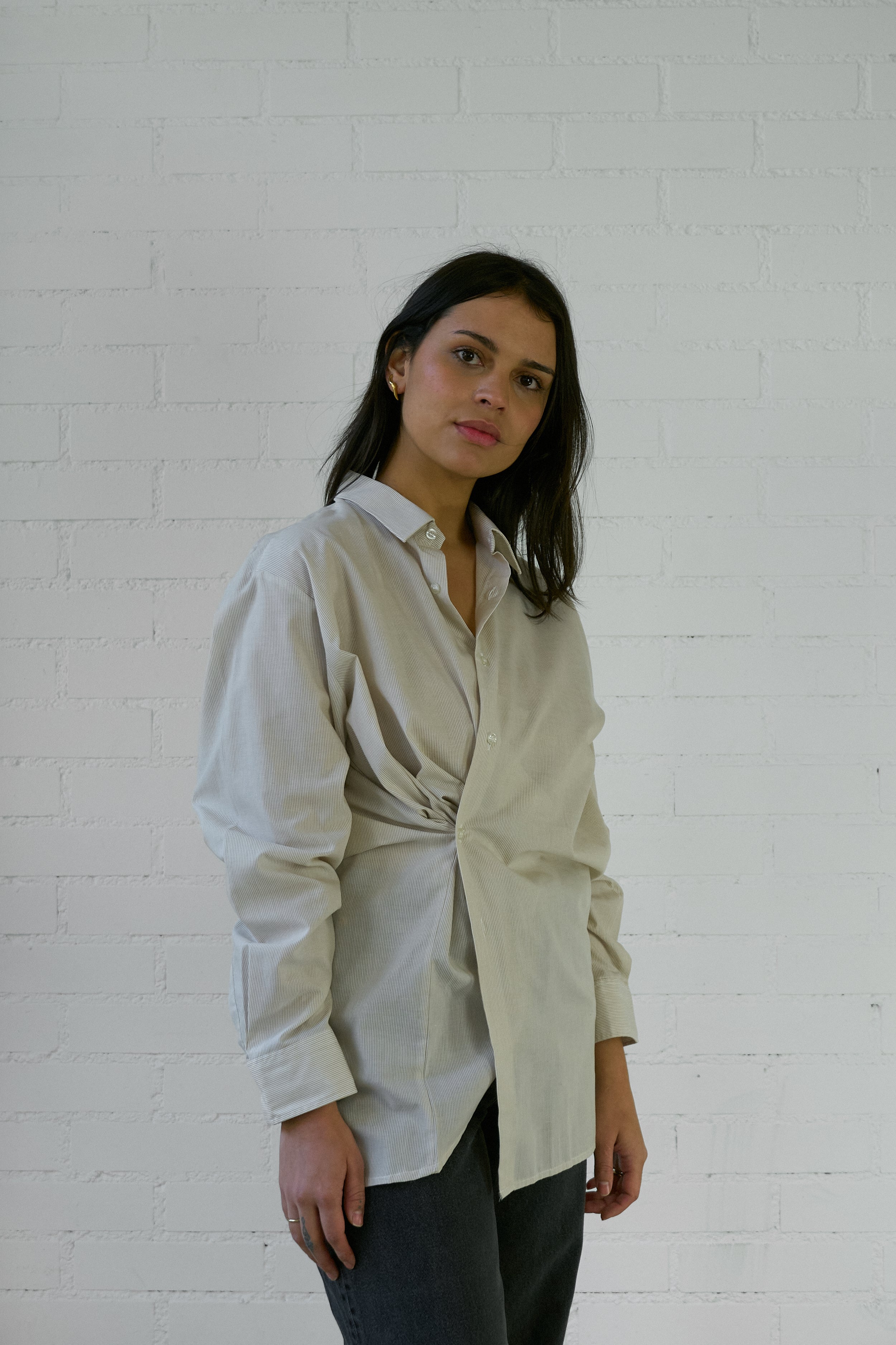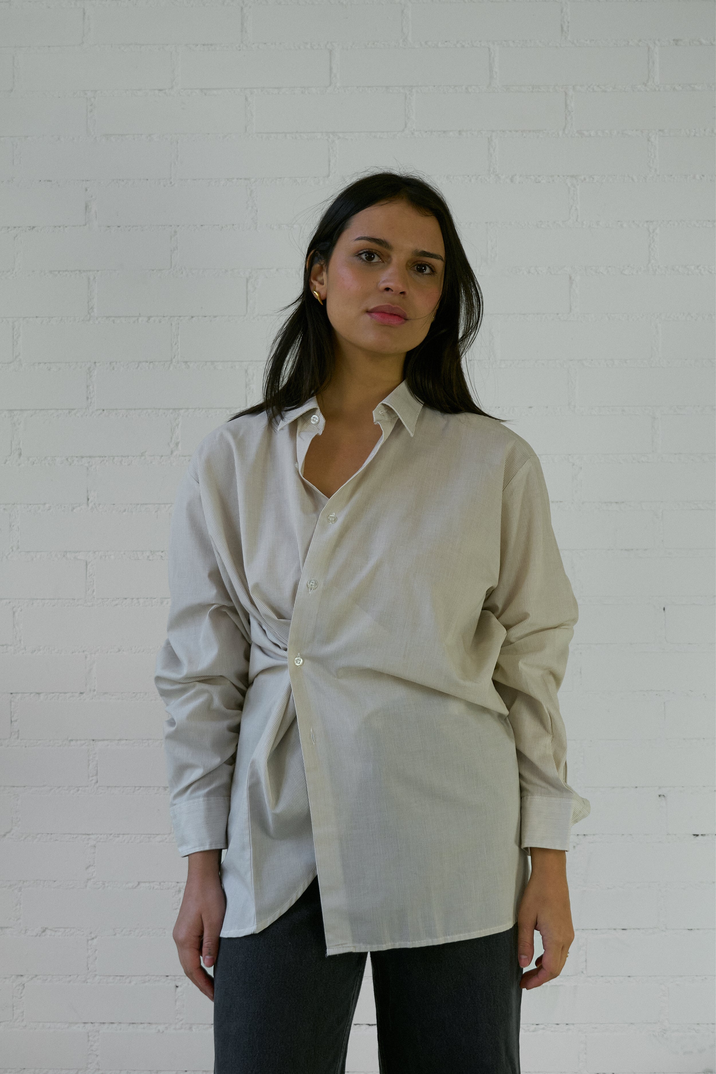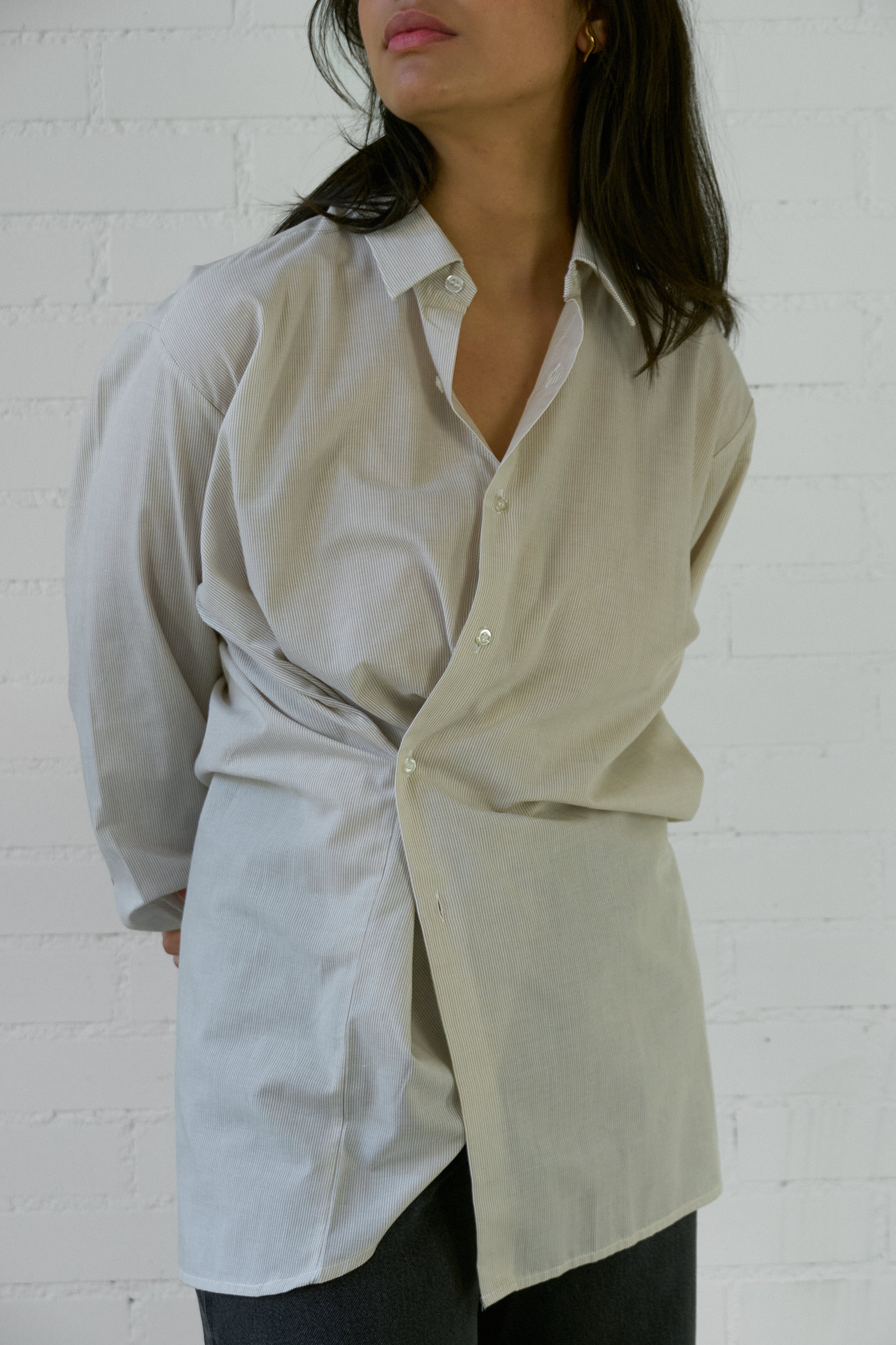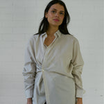 The Asymmetrical Shirt is our take on your favorite shirt, but reminagined with intention and interest. We've designed this vintage piece to be worn with a soft tailoring feel- the shirt crosses over the body creating an asymmetrical approach.