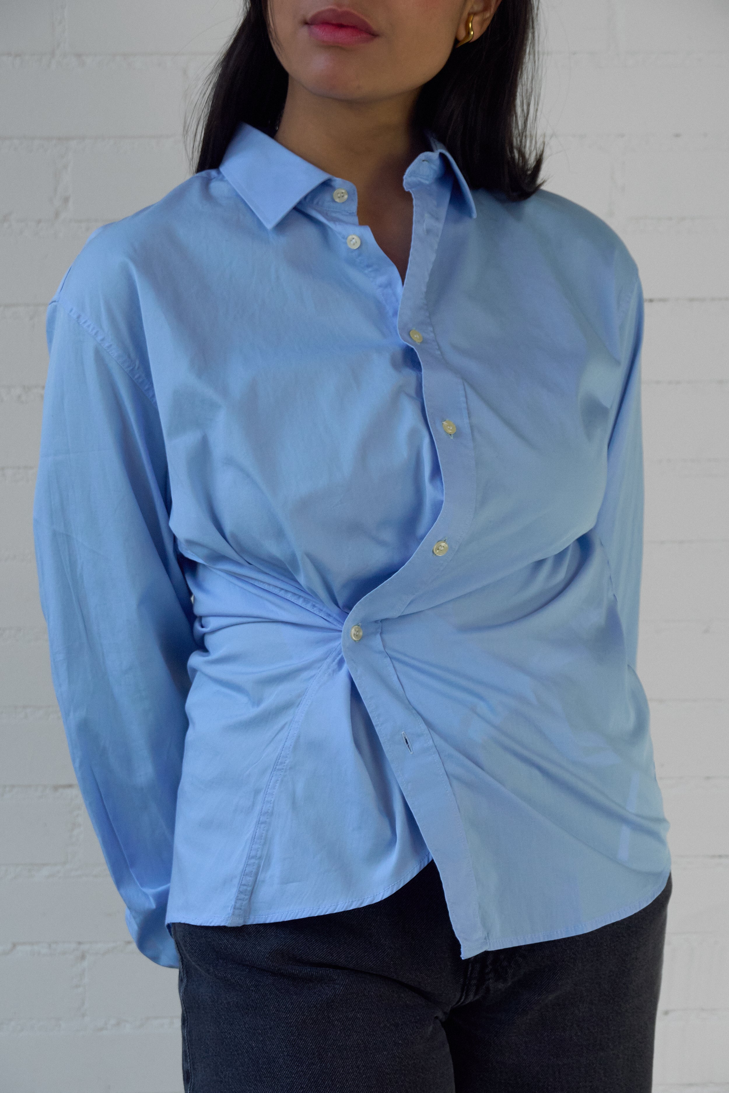 The Asymmetrical Shirt is our take on your favorite shirt, but reminagined with intention and interest. We've designed this vintage piece to be worn with a soft tailoring feel- the shirt crosses over the body creating an asymmetrical approach.