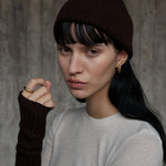 Our knit accessories are knitted in Switzerland in a small manufactory less than 30km away from our studio. We regularly visit our manufacturer to develop new products together. All pieces are knitted fully-fashioned, which is a more traditional and higher quality method than cut and sew knitwear. As it is knitted directly in the final shape, there’s no waste of yarn. Fully-fashioned knitwear is a slower, more complex and expensive method – however rewards you with a seamless, neat and high-quality finish.