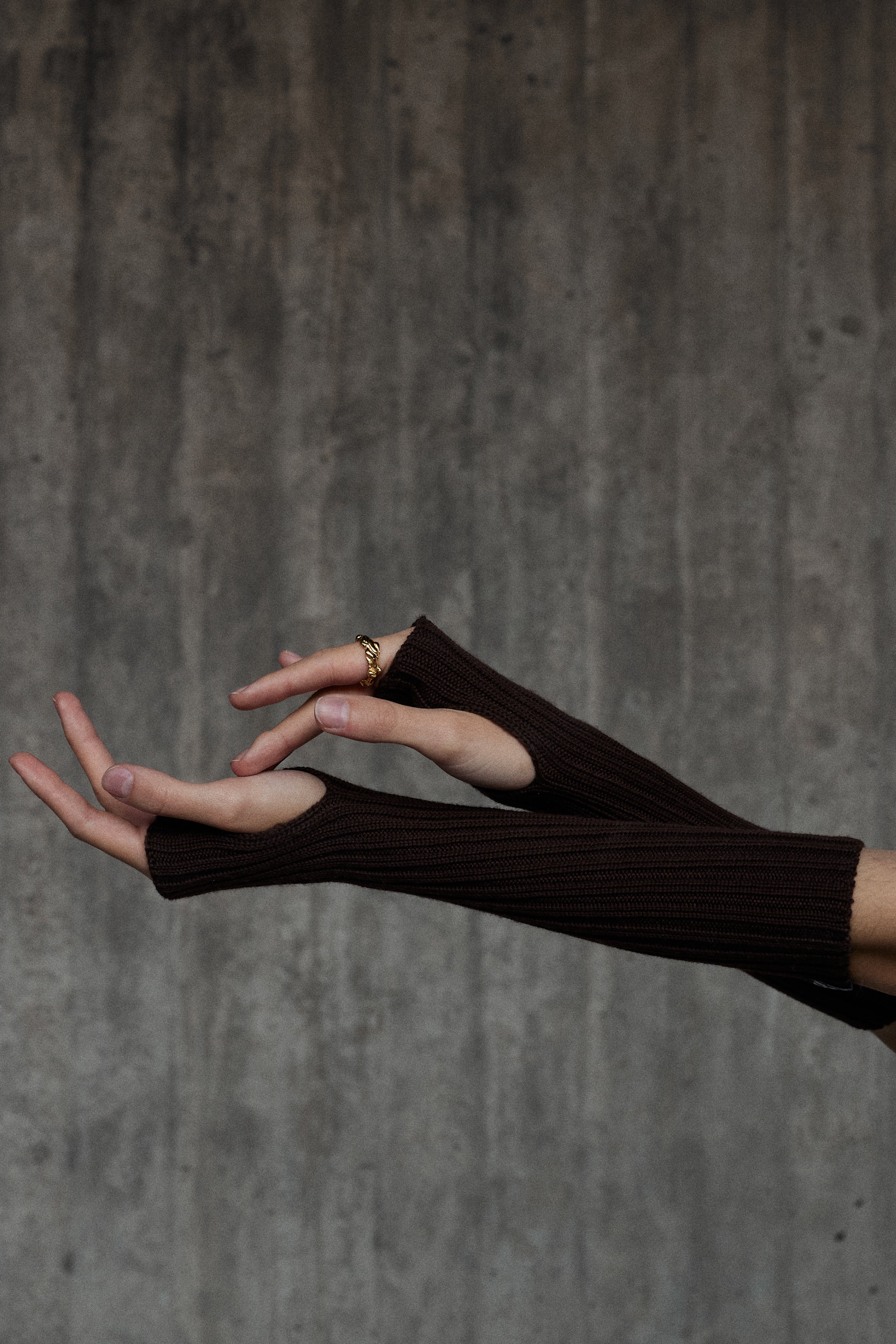 Crafted from extrafine merino wool, these long and cozy sleeves will keep your wrists warm. Perfect for layering, this piece can be worn outside as an alternative to gloves or inside with a shirt or pullover for extra warmth. Featuring thumb slots and a seamless ribbed knit finishing.