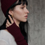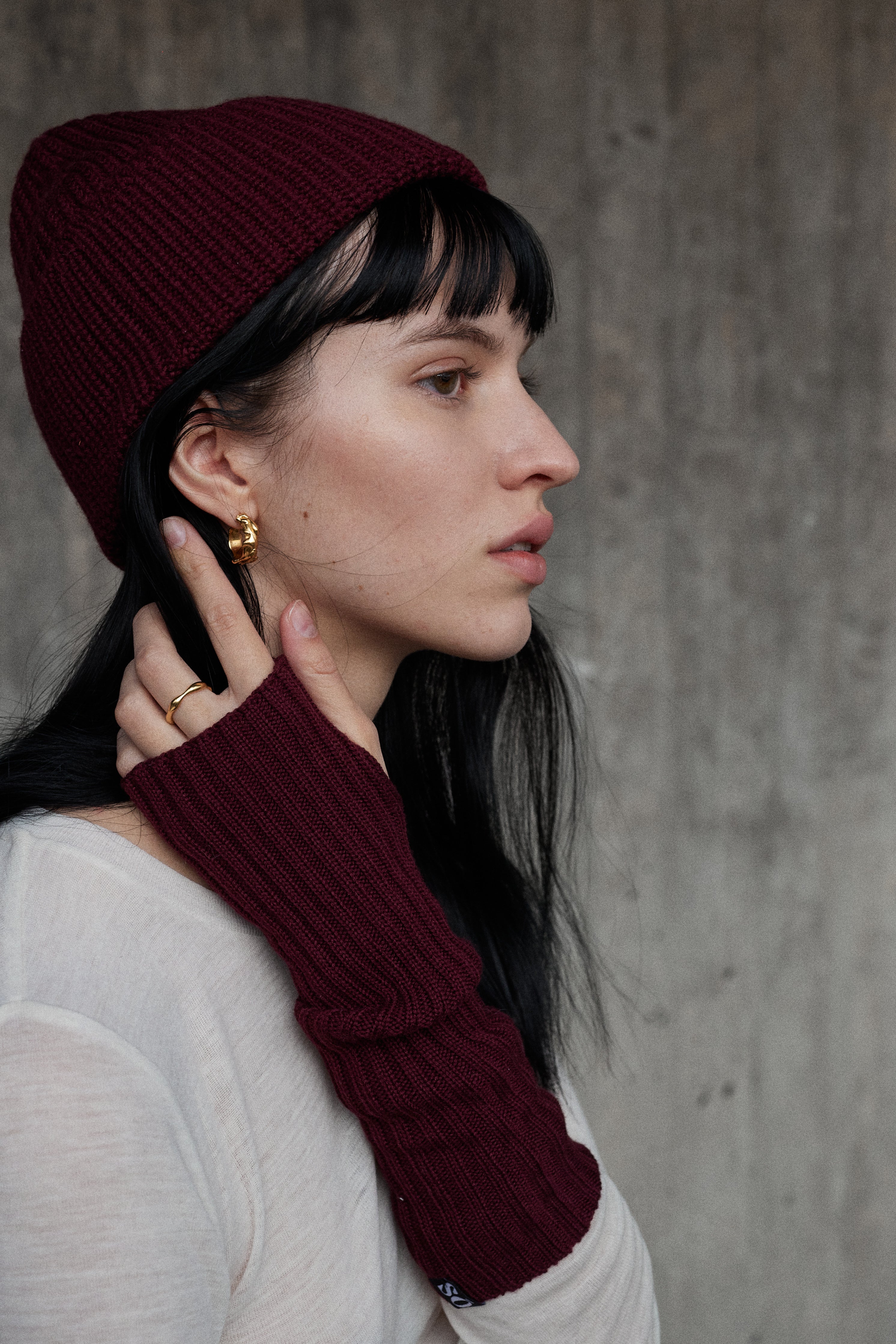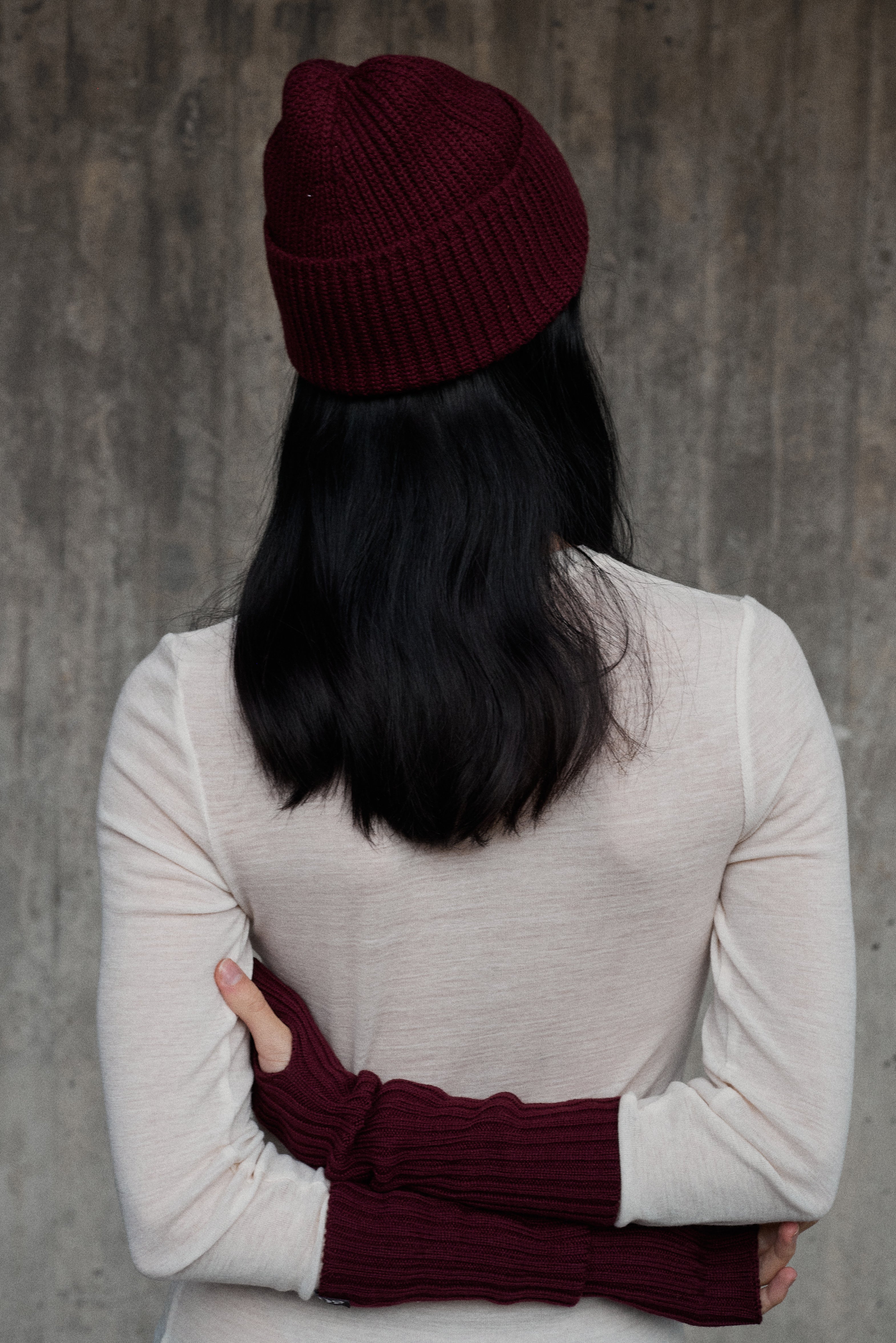 Our knit accessories are knitted in Switzerland in a small manufactory less than 30km away from our studio. We regularly visit our manufacturer to develop new products together. All pieces are knitted fully-fashioned, which is a more traditional and higher quality method than cut and sew knitwear. As it is knitted directly in the final shape, there’s no waste of yarn. Fully-fashioned knitwear is a slower, more complex and expensive method – however rewards you with a seamless, neat and high-quality finish.