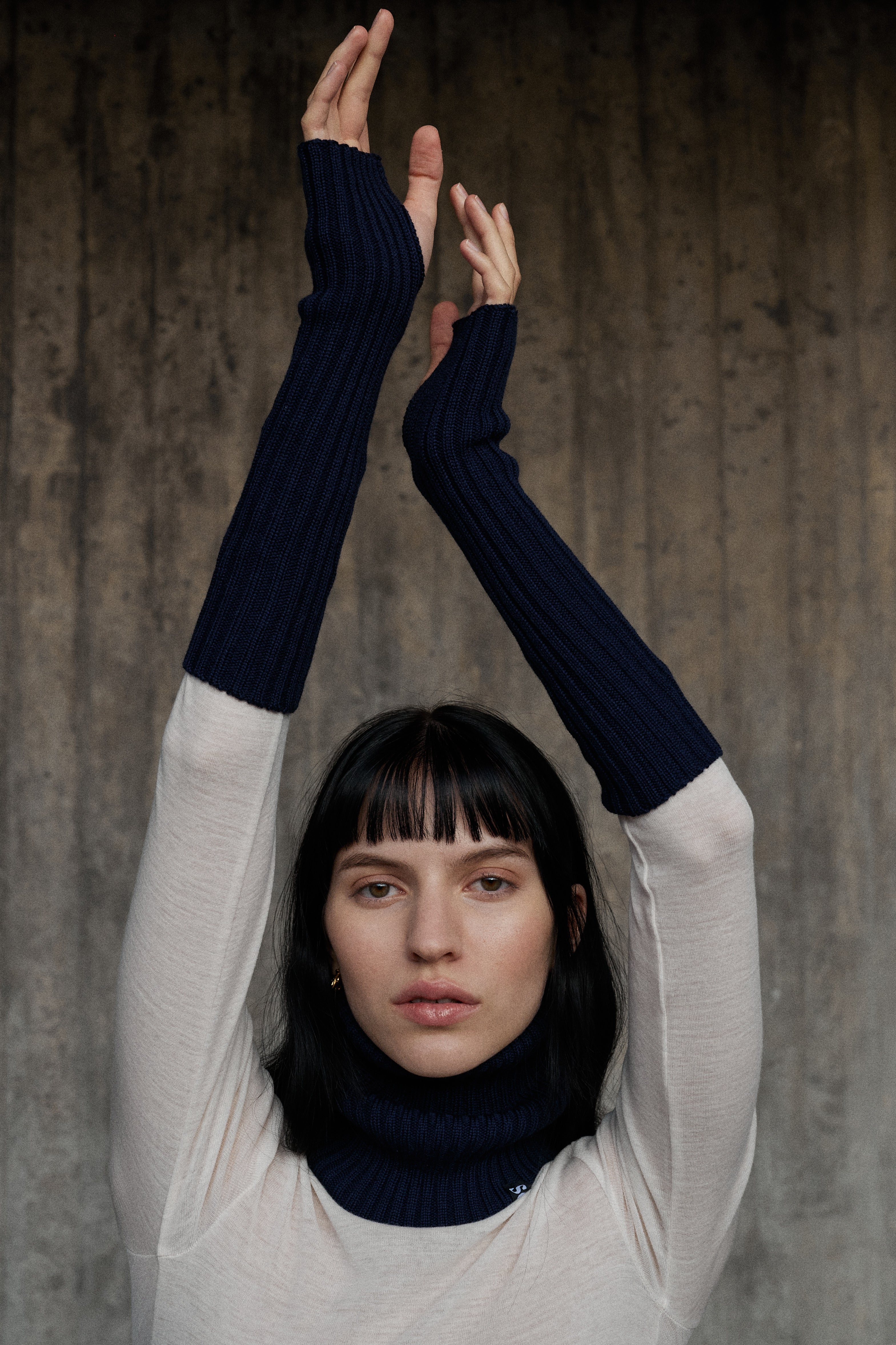 Crafted from extrafine merino wool, these long and cozy sleeves will keep your wrists warm. Perfect for layering, this piece can be worn outside as an alternative to gloves or inside with a shirt or pullover for extra warmth. Featuring thumb slots and a seamless ribbed knit finishing.