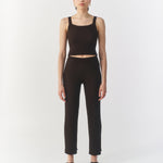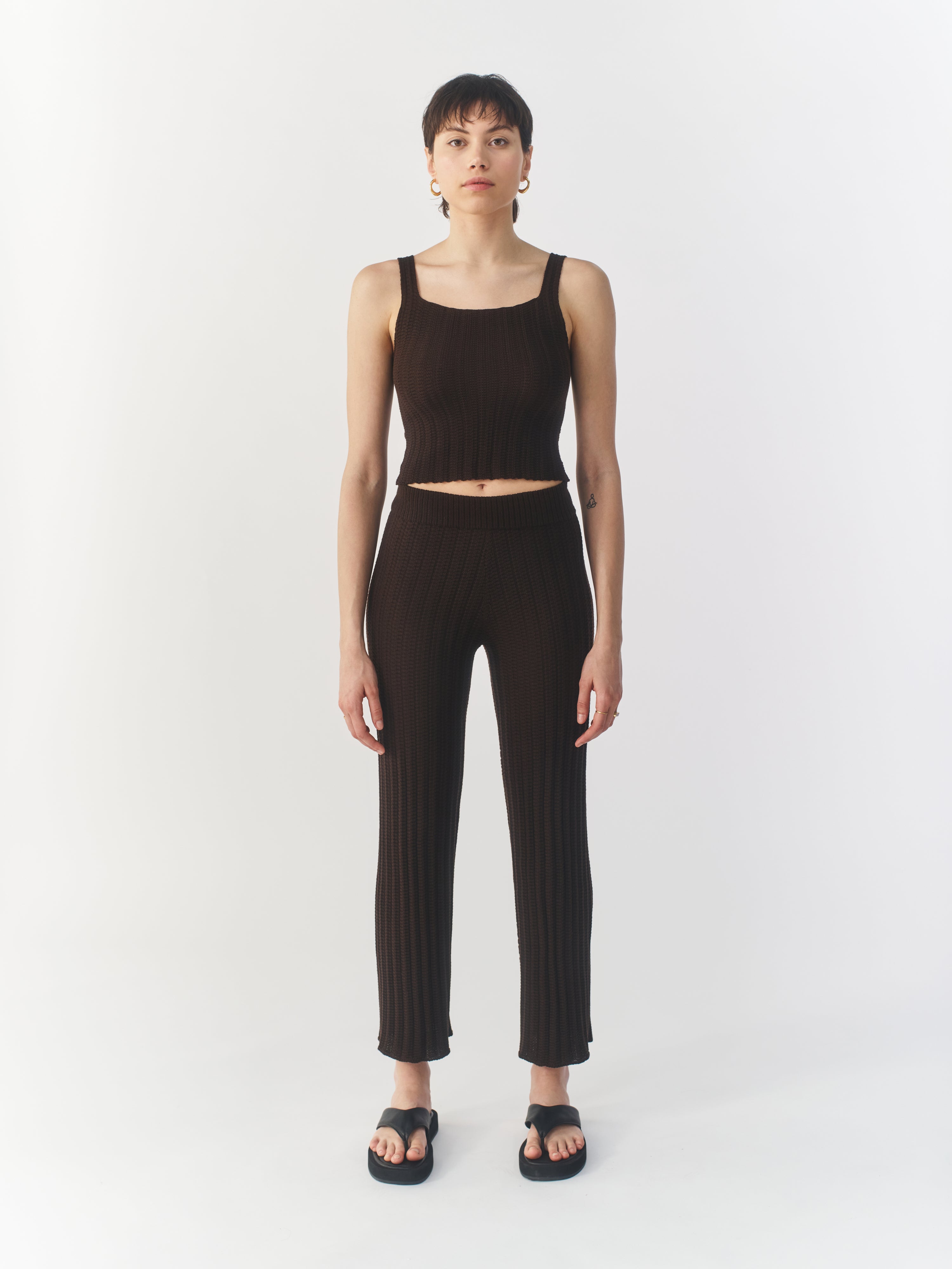 Model is 1,80m and wears the Top Ribbed in size XS/S and the Pants Plissé in size M/L.