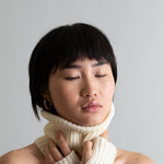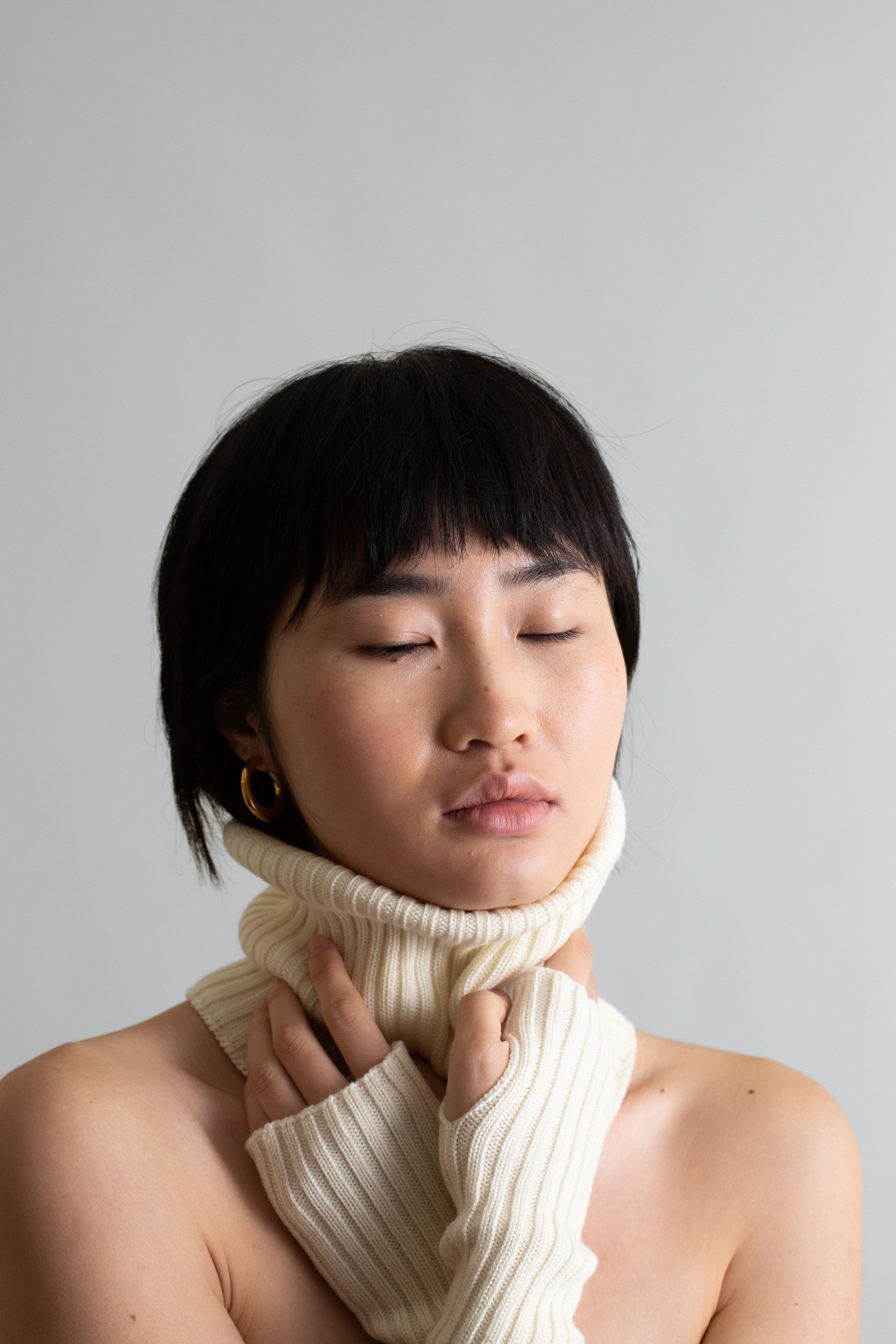 Our knit accessories are knitted in Switzerland in a small manufactory less than 30km away from our studio. We regularly visit our manufacturer to develop new products together. All pieces are knitted fully-fashioned, which is a more traditional and higher quality method than cut and sew knitwear. As it is knitted directly in the final shape, there’s no waste of yarn. Fully-fashioned knitwear is a slower, more complex and expensive method – however rewards you with a seamless, neat and high-quality finish.
